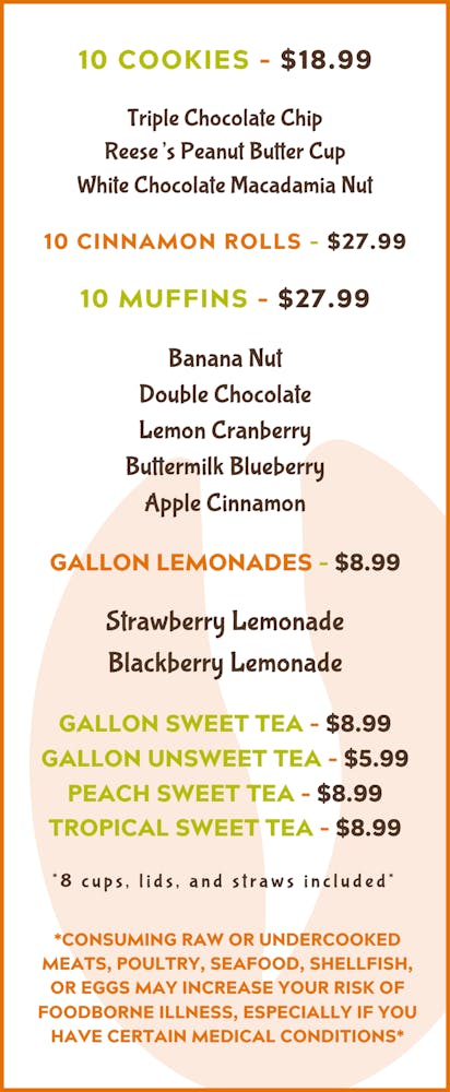 Build Your Own – Choose your bread type, meat, egg, cheese(s) and veggies.