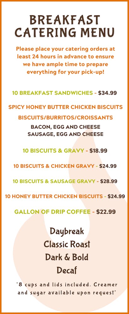 A warm fluffy biscuit, split in half, stuffed with a crispy spicy fried chicken breast, and smothered in Roaster's homemade honey butter.